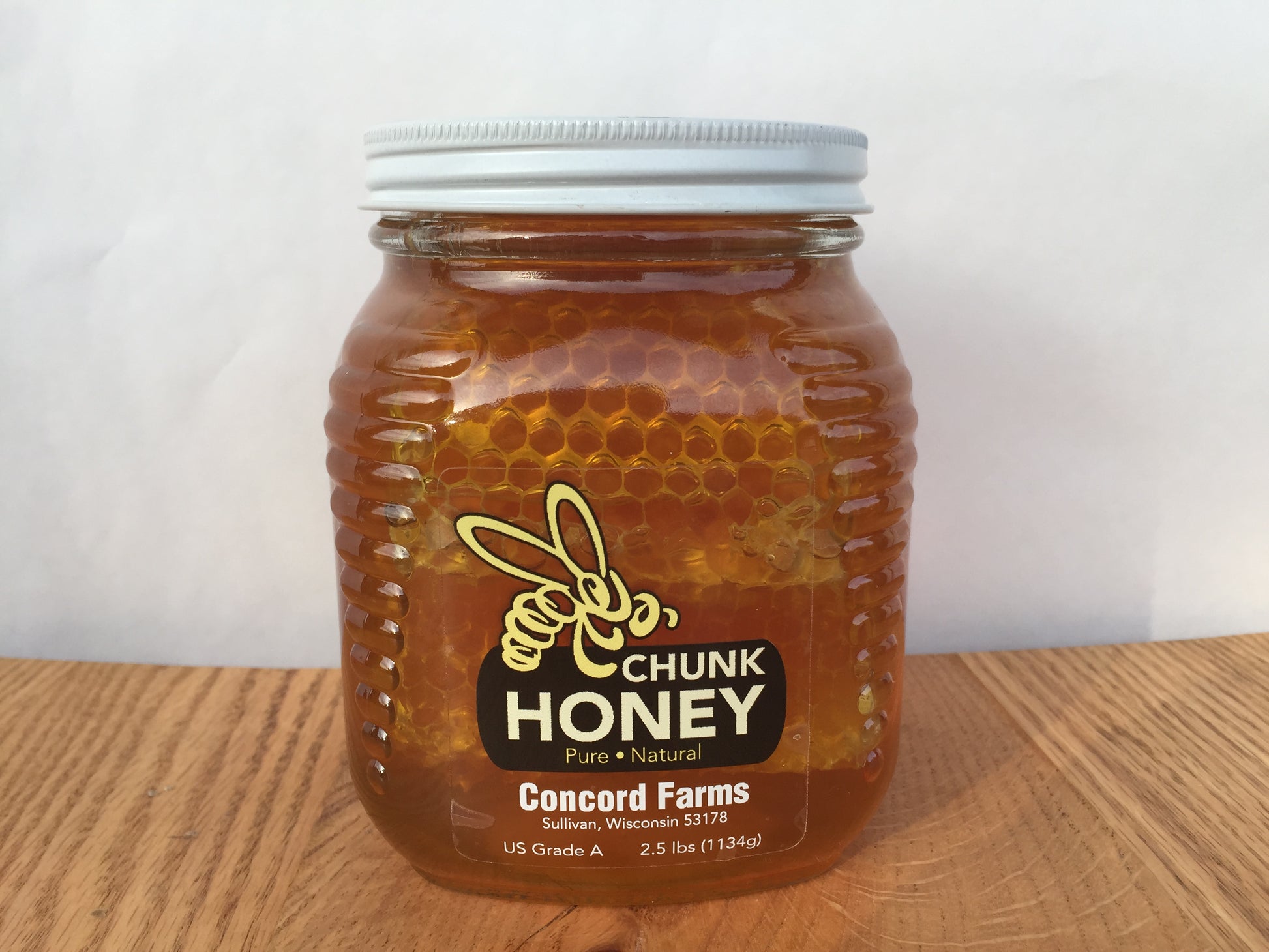 Can't decide between comb honey or raw honey? Concord Farms natural, unpasteurized honey with chunks of comb honey is the sweet combination you are looking for.
